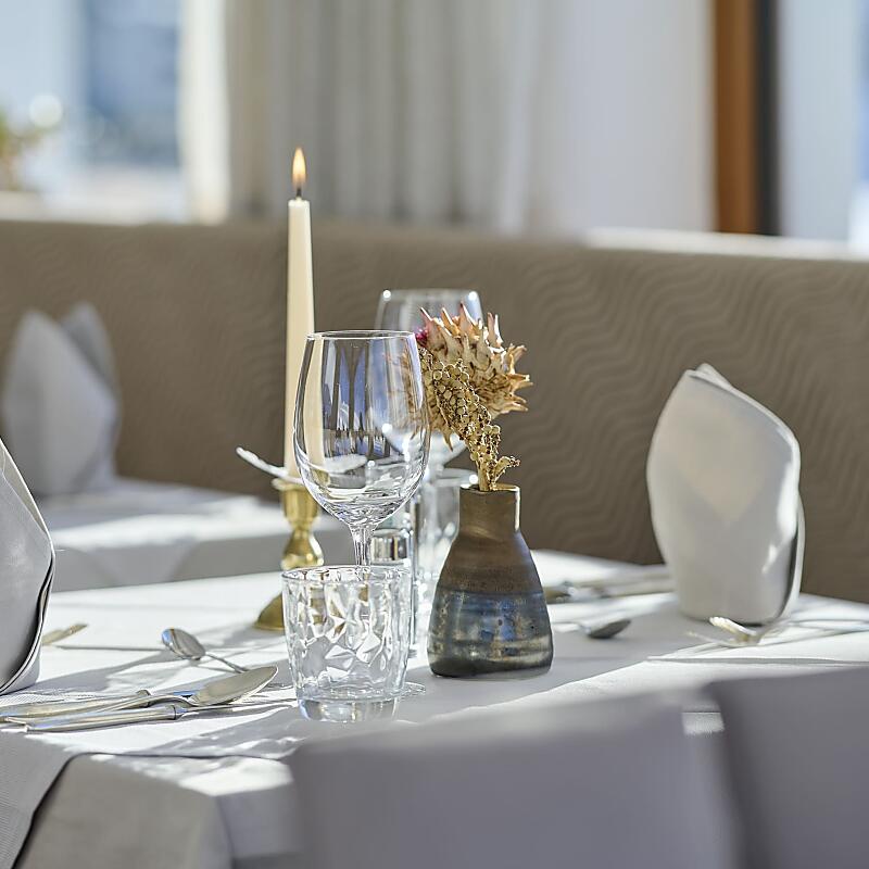 Wenn du dem Himmel hier nicht schon so nahe wärst, wärst du es spätestens jetzt: Komm zwischen 18.45 und 20.30 Uhr in den Speisesaal und wir servieren dir das Beste aus der Region, inklusive regelmäßiger Salatbuffets.