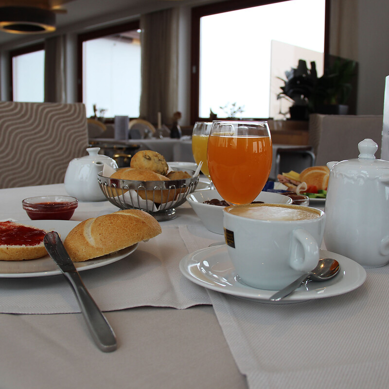 Von 7.30-10 Uhr kannst du dich an unserem reichlich gedeckten Buffet mit Saftbar, Vitalecke, verschiedenen Brotsorten und noch vielem mehr bedienen. Auf Wunsch bereiten wir außerdem warme Kleinigkeiten wie Snack-Würstchen, Eiergerichte, gebratenen Tiroler Speck und weitere Spezialitäten aus unserer Frühstückskarte (kostenpflichtig) zu.