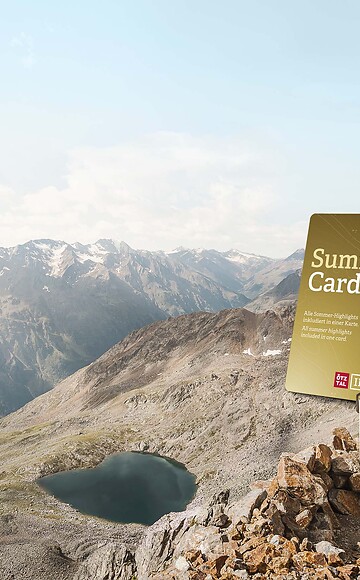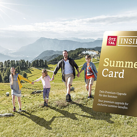 Für deinen Sommerurlaub im Ötztal stellen wir die Ötztal Summer Inside Card in unserer Unterkunft kostenlos zur Verfügung. Ab dem zweiten Urlaubstag (ausgenommen am Anreisetag) und bis zu deiner Abreise kannst du das gesamte inkludierte Leistungsangebot nutzen. Es erwarten dich Gratiseintritte oder Ermäßigungen beim öffentlichen Verkehr, Bergbahnen, verschiedensten Sehenswürdigkeiten und Ausflugszielen, Wellnesseinrichtungen und sogar Outdoor-Geschäften.