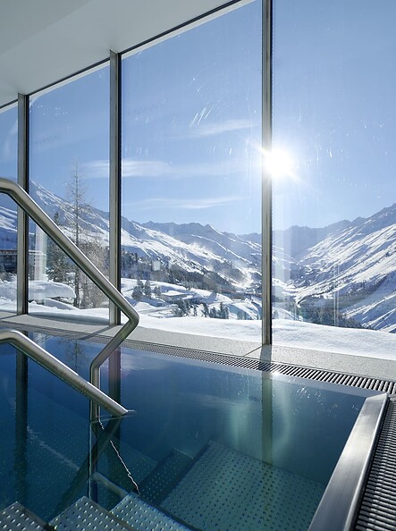 Was für ein Anblick! In unserem Hotel in Hochgurgl mit Schwimmbad verschmilzt die ruhige und glasklare Wasseroberfläche nahtlos mit den schneeweißen Weiten der Ötztaler Gletscherwelt. Wenn du hier eintauchst, wirst du das Gefühl haben, in einem wunderschönen Bergsee zu baden – bis auf die Tatsache, dass das Wasser ganzjährig angenehm warm ist und du es dir nach dem Schwimmen auf bequemen Sitzsätzen oder Daybeds direkt neben dem Pool gemütlich machen kannst.
