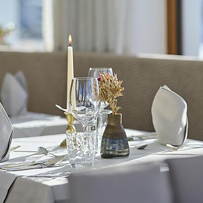 At the Alpenhotel Laurin, a 3-star superior hotel below the Timmelsjoch, your well-being is our top priority. In the morning, the sun gently wakes you before you help yourself to our abundant breakfast buffet. Then, you can get your body moving in the surrounding mountains before unwinding in our spectacular 2150 Relax & Move wellness area. The perfect way to end the day? A lovingly prepared four- to five-course evening menu at our hotel in the Ötztal Alps.