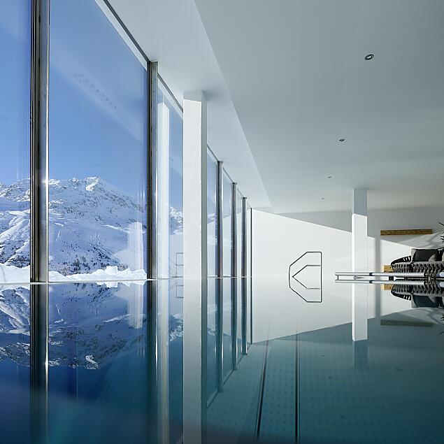 To relax and recharge after an active day of skiing or hiking, our 550m2 2150 RELAX & MOVE area offers a panoramic swimming pool with counter-current system and massage jets, a Swiss stone pine infrared cabin, a steam bath, and a spacious Finnish panoramic sauna. To cool down and unwind, there is an ice room, cosy daybeds, beanbags, and a heated seating niche by the natural stone wall at the pool, as well as a small relaxation room with an alpine spring water fountain and our wellness terrace. Above the relaxation area, the Move room features a selection of the latest Technogym equipment for training or a yoga session with breathtaking mountain views. Everything is possible, nothing is a must in the 2150 RELAX & MOVE at our spa hotel in Gurgl, Tyrol.